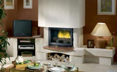 Şömine Modern Prızma Hazneli 85 cm. Alt Küpeşte Odunluklu , Sağ yan oturma grublu. Kemer burgaza uygulanmıştır.